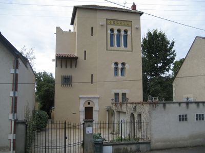 The observatory features a domed tower with crenellated terrace and ceramic decorations on its whitewashed facades at 22 Rue Ranchot in Bourges.