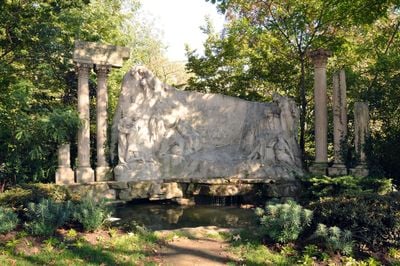 Le Rêve du Poète, Marble sculpture in Jardin de la Nouvelle-France, Paris, France.