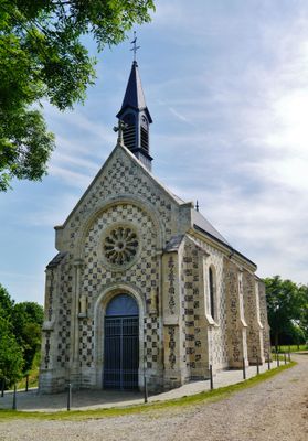 The chapel was constructed in 1880 on the site of an earlier Romanesque structure, which marked the tomb of the apostle of Vimeu.