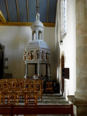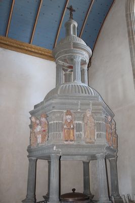 Baldaquin des fonts baptismaux, Stone baptismal baldachin in Bodilis, France.