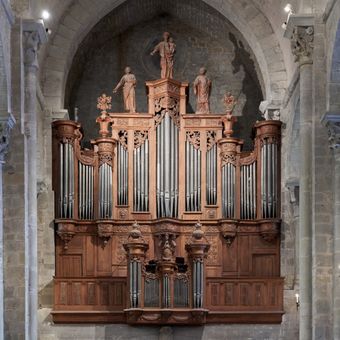 Pipe organ in Carcassona, organ built in 1637 by Crespin Vergniole, rebuilt in 1688 by Jean de Joyeuse, enlarged in 1775 by Jean-Pierre Cavaillé, located in the Saint-Nazaire basilica in Béziers (Aude, France) ; entirely classified as a Historical Monument Object