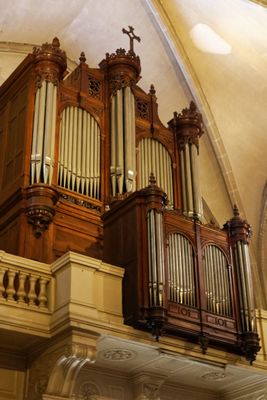 Grandstand pipe organ on the Notre-Dame-du-Lac church in Lunel (Hérault, France)
