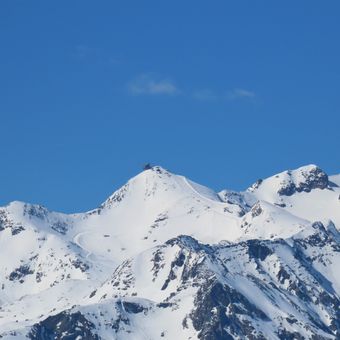 The orientation table at the summit enables visitors to identify surrounding mountains, including Mont Blanc, Meije, and Grandes Jorasses.
