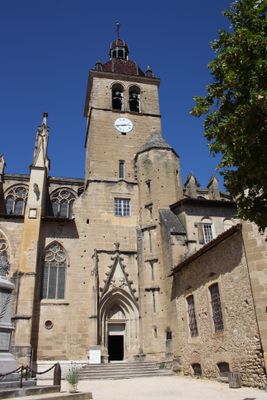 The flamboyant facade includes three portals topped by a balustrade, with designs inspired by the Saint-Maurice cathedral in Vienne.