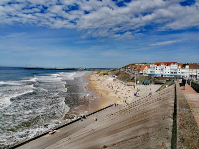 This beach extends for 1.5 kilometers along the northern French coast, featuring fine golden sand and a paved promenade for walking.