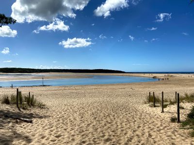 The meeting point of the Payré estuary and ocean creates different water environments, allowing both calm and wave activities in the same location.