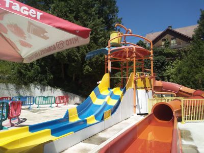 St Alban Plage features an inflatable water park structure reserved for children taller than 80 centimeters during summer months.