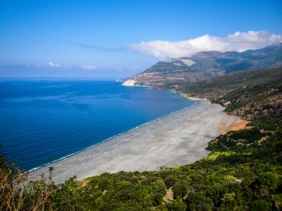 Plage de Nonza, Black pebble beach in Cap Corse, France