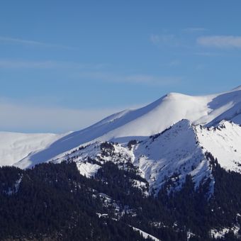 The slopes of 30 to 35 degrees present excellent conditions for backcountry skiing during the winter season.