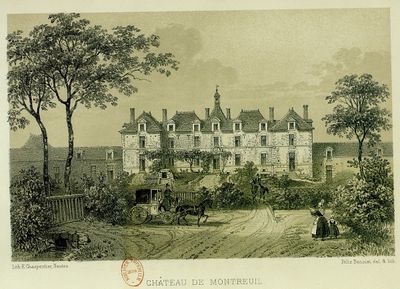 The Château de Montreuil features stone walls, grand halls, and extended gardens that reflect traditional French architectural design of Loire-Atlantique region.