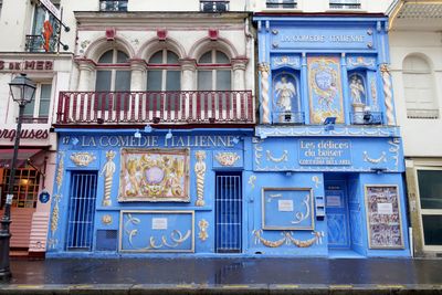 The venue stands as the sole Italian theater in France, featuring painted walls, ceilings, and an original baroque façade in the historic theater district.