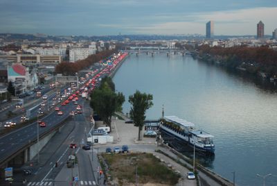 The Quai Perrache extends along the Saône River, forming a connection point between the Cours de Verdun and the Pont de la Mulatière bridge.