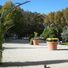 The square features Gothic cloister remains surrounded by Mediterranean plants, water features, flowerbeds, and large trees providing natural shade.