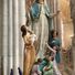 The Notre-Dame des Enfants basilica stands on a hill with Gothic features including flying buttresses, pinnacles, spires, and gargoyles made from tufa stone.