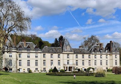 The château d'Aveny extends along 75 meters of length and features classical architectural elements from both 17th and 18th centuries in its design.