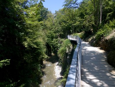 The Sierroz river has carved an 800-meter canyon between Mont Revard and Lake Bourget, with walls reaching heights of 20 meters.