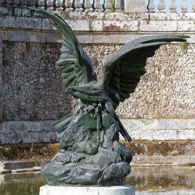 Eagle preparing to defend its prey, sculpture by Auguste Cain