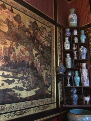 A ceremonial drawing room adjacent to the main exhibition space contains both Asian artifacts and European leisure items such as billiard tables.
