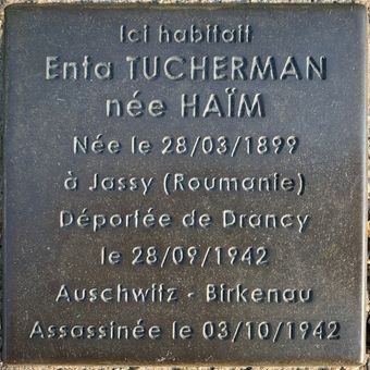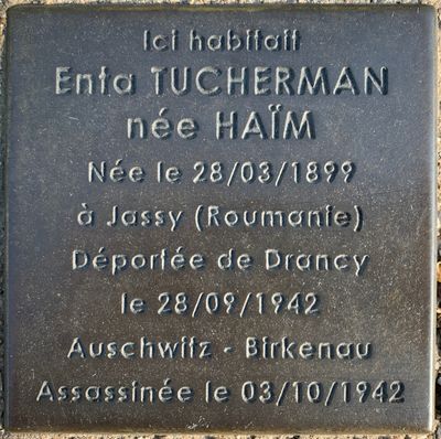 Stoleperstein à la mémoire de Enta Tucherman, stolperstein à Fontenay-sous-Bois, France