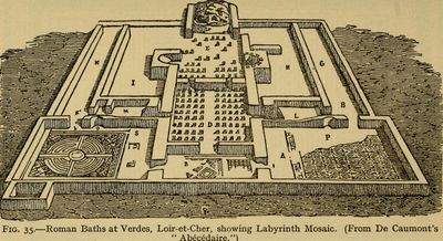 A mosaic with a labyrinth pattern from the thermal baths is now preserved at the Museum of Fine Arts in Blois as a testament to local artistry.