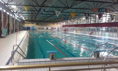 The facility contains two heated pools: a 50-meter Olympic basin and a smaller 12 by 10-meter learning section for different aquatic activities.