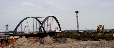 The metal structure of Witry Bridge extends across a span of 67 meters and maintains a width of 23 meters throughout its length.