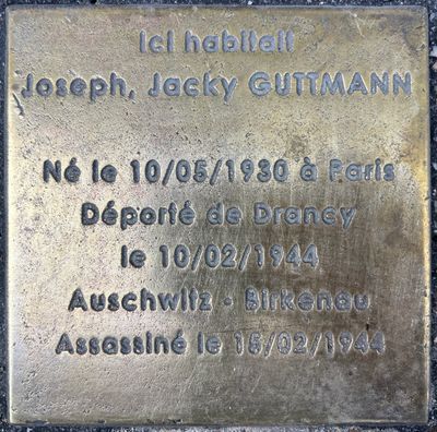 Stolperstein à la mémoire de Joseph Jacky Gutmann, stolperstein à Fontenay-sous-Bois, France