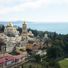 New Athos Monastery is a large complex containing six churches arranged within a walled compound on elevated ground overlooking the town. The buildings display a mix of Byzantine design and Russian architectural elements, with golden domes that stand out prominently from the surrounding area.