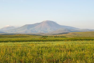 From the summit, visitors can observe three significant peaks: Mount Elbrus, Mount Aragats, and Mount Ararat during clear weather conditions.