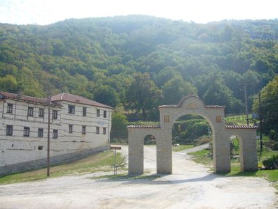 The monastery maintains its position as an active religious center at coordinates 40.534161, 21.484502, overlooking the surrounding Macedonian landscape.