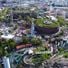 Linnanmäki is a large amusement park in Helsinki featuring over 40 rides spread across different zones for various age groups. The park sits on hilly terrain with roller coasters, family rides, and smaller attractions distributed throughout the grounds.