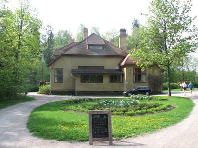 Architect Mauritz Gripenberg designed this residence in 1904 for Baroness Elvira Standertskjöld, incorporating elements of early 20th-century Finnish architectural style.