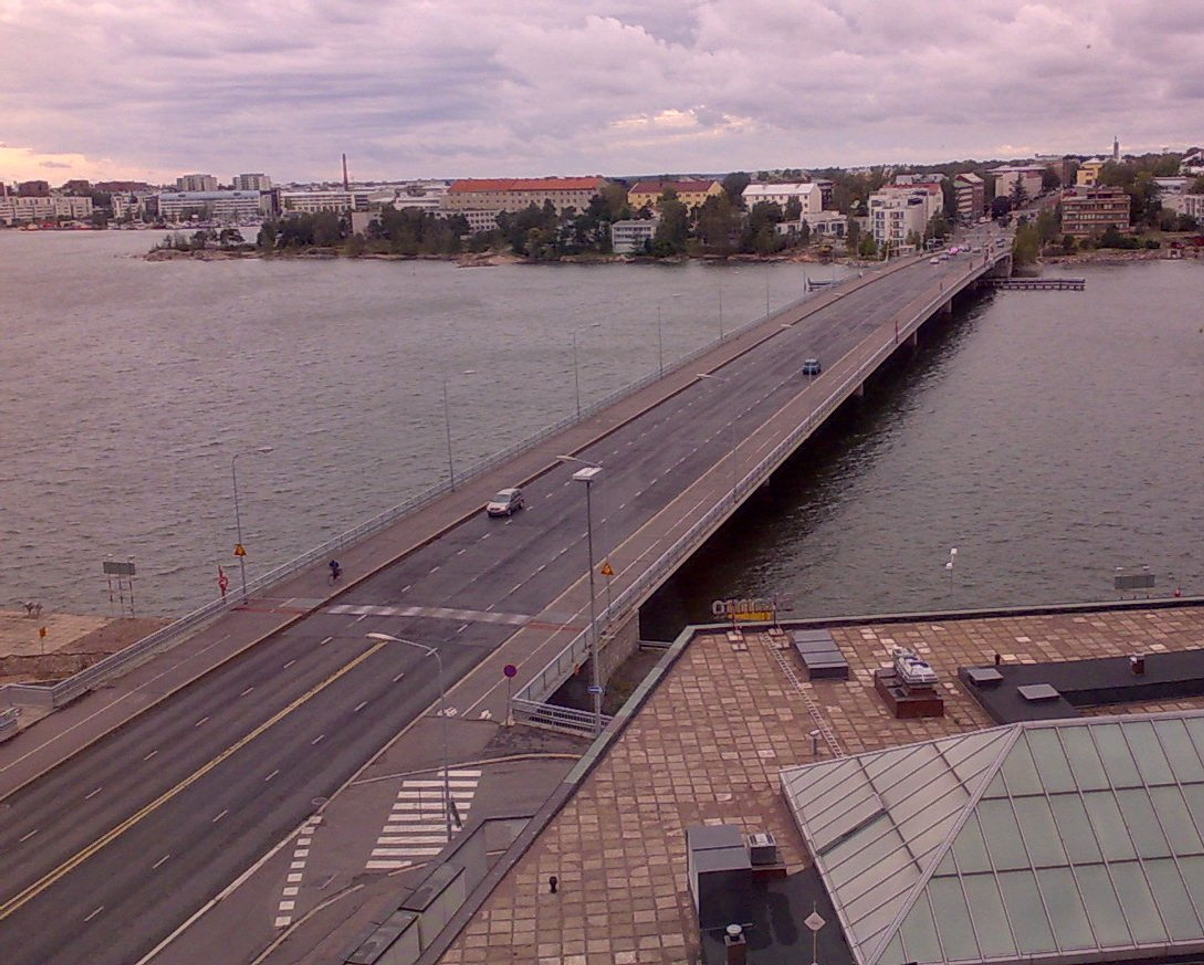 The bridge accommodates both vehicles and pedestrians, providing a direct route between mainland Helsinki and the residential district of Lauttasaari.
