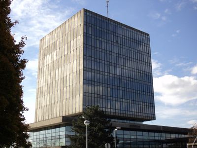 The structure underwent a substantial renovation from 2017 to 2020, which improved energy efficiency while maintaining its original brutalist architectural characteristics.