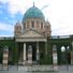 The monumental cemetery complex features long arcades with cupolas extending over 500 meters along the main entrance section of the grounds.