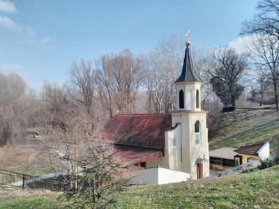 The Church of St. Petka stands on the outskirts of Vukovar, featuring design elements characteristic of Eastern Orthodox religious architecture with a prominent bell tower.