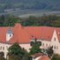 After an earthquake in the nineteenth century, builders added a classicist porch with a tympanum and Doric columns to the structure.
