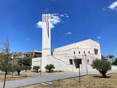 The church spans 1,024 square meters with a 50-meter length and features modern architectural elements designed by Jerko Rosin and Ante Vrban.