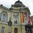 The Comedy Theatre of Budapest, known locally as Vígszínház, is an Art Nouveau theatre building on Szent István körút in District XIII designed by architects Ferdinand Fellner and Hermann Helmer. The interior includes several tiers of balconies, a large auditorium, and a main stage framed by elaborate stucco work, chandeliers, and gilded detailing.