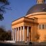 The structure combines a circular floor plan with a square chapel, incorporating both neoclassical and modern architectural elements in its design.