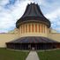 The Holy Angels Church exhibits modern architectural design with large windows and a spacious interior that accommodates numerous worshippers during religious services.