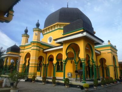 Located on K.L. Yos Sudarso road, approximately 20 kilometers north of central Medan, the mosque maintains regular prayer services and functions as a departure point for Mecca pilgrims.