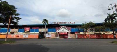 The H. Dimurthala Stadium features covered tribunes on all sides and includes specific areas for team preparation and media activities.