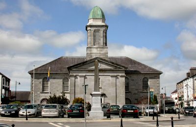 The Sacred Heart Catholic Church, completed in 1925, contains detailed stained glass windows and mosaics depicting important figures from Irish history.
