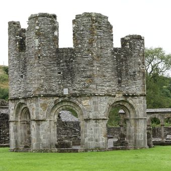 Mellifont Abbey is a monastery ruin near Drogheda set along the Mattock River, with fragments of medieval stone buildings scattered across the site. The octagonal lavabo building and Romanesque arch remains are among the recognizable features that visitors encounter when exploring the grounds.