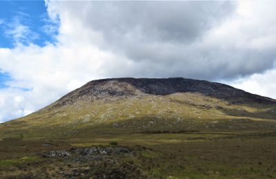 Corcogemore rises to 609 meters within the Maumturk mountain range, featuring a prominent cairn marker at its highest point in Connemara National Park.