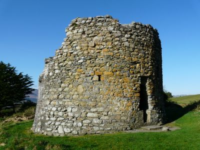 The cylindrical stone structure rises two stories high with walls measuring two meters thick and features an internal staircase connecting both levels.