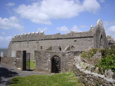 The priory walls contain carved stone window frames and door elements that demonstrate medieval Irish architectural techniques and craftsmanship.