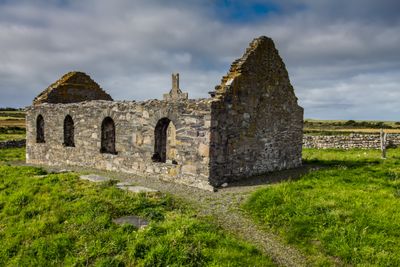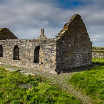 The ruins sit roughly 2.5 kilometers northeast of Falcarragh village and are accessible by foot. The high cross is secured inside the church walls, making it easy to view up close without concern for damage.