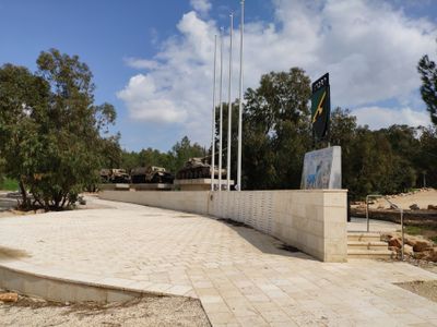 The Egrof veRomach memorial features two distinct monuments that incorporate original military equipment from Sinai to commemorate fallen soldiers of the Reserve Armored Brigade.